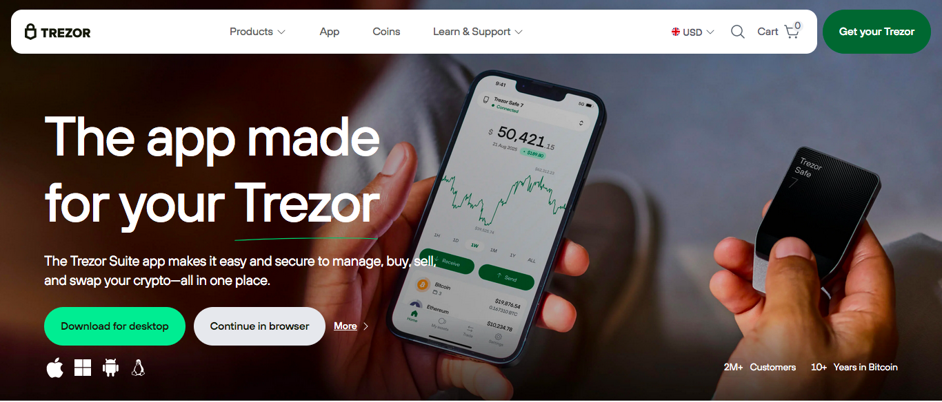 Hardware wallets such as the Trezor Model T and Trezor One are engineered to protect private keys by keeping them offline. This design significantly reduces the risk of cyberattacks, phishing attempts, and malware-based threats. However, users still need a secure way to interact with blockchain networks through a browser interface.